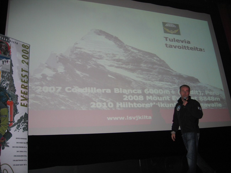 Retkikunnan ensimmäiset julkiset esiintymiset tapahtuivat Aventuran järjestämissä tilaisuuksissa Helsingissä, Tampereelle ja Turussa keräten paljon vuorivaelluksesta kiinnostuneita henkilöitä. Everest 2008 retkikunta oli paikalla tuomassa asiantuntijan näkemystä vuoristossa liikkumiseen ja siellä selviämiseen. Hyvien kokemusten siivittäminä jatkamme yhteistyötä Aventuran ja kiipeilyn erikoisliike Camun kanssa.