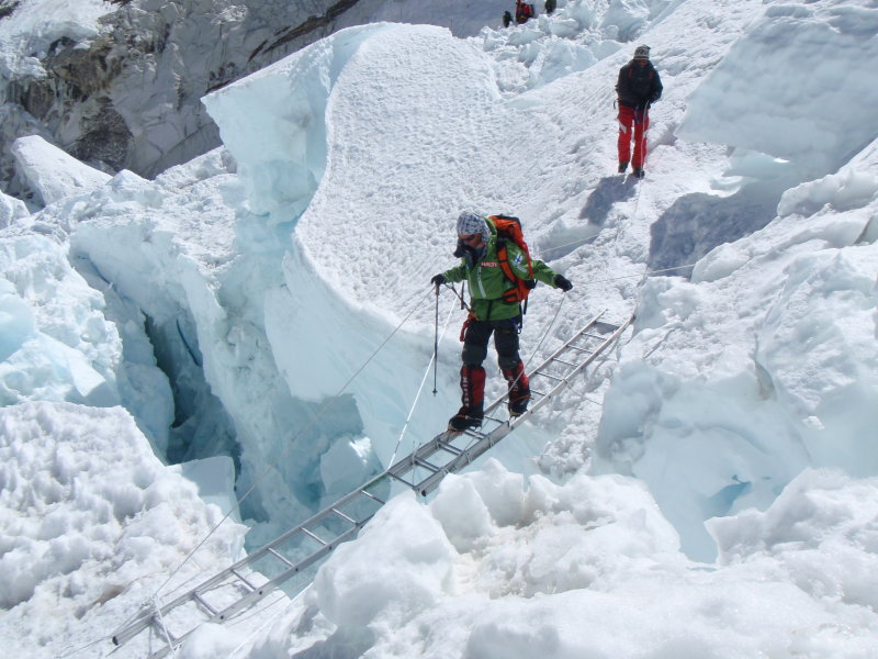 Heikki ylittää railoa Khumbulla.
