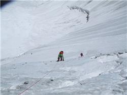 Sain juuri (lounasaikaan maanantaina) radiolla tiedon, että huipputiimi on siirtynyt C2:sta C3:een. Kaikki on mennyt muuten suunnitelmien mukaan, mutta Heikki kääntyi takaisin kolhaistuaan ranteen sen verran kipeästi, ettei se kestänyt enää jumarointia. Hän laskeutuu C1:een Timon seuraksi ja siirtyy huomenna luultavasti takaisin C2:een odottelemaan huipputiimin paluuta. Viimeisin sääennuste lupaa alhaisia tuulia huipulle 20-22.5 eli huiputuspäivän valinta on sen suhteen osunut nappiin. Ennusteen mukaan keskiarvotuuli tuolloin vaihtelee välillä 10-15m/s ja yölämpötila pitäisi olla välillä -23-25C. Perusleirissä minä nautin lounaaksi tonnikalapastaa juuston kera sekä lämmintä teetä ja ihmettelen, että miten vaatteet voivat vasta kahden viikon päälläolon jälkeen tuoksua niin, hmmm, eksoottiselle...
